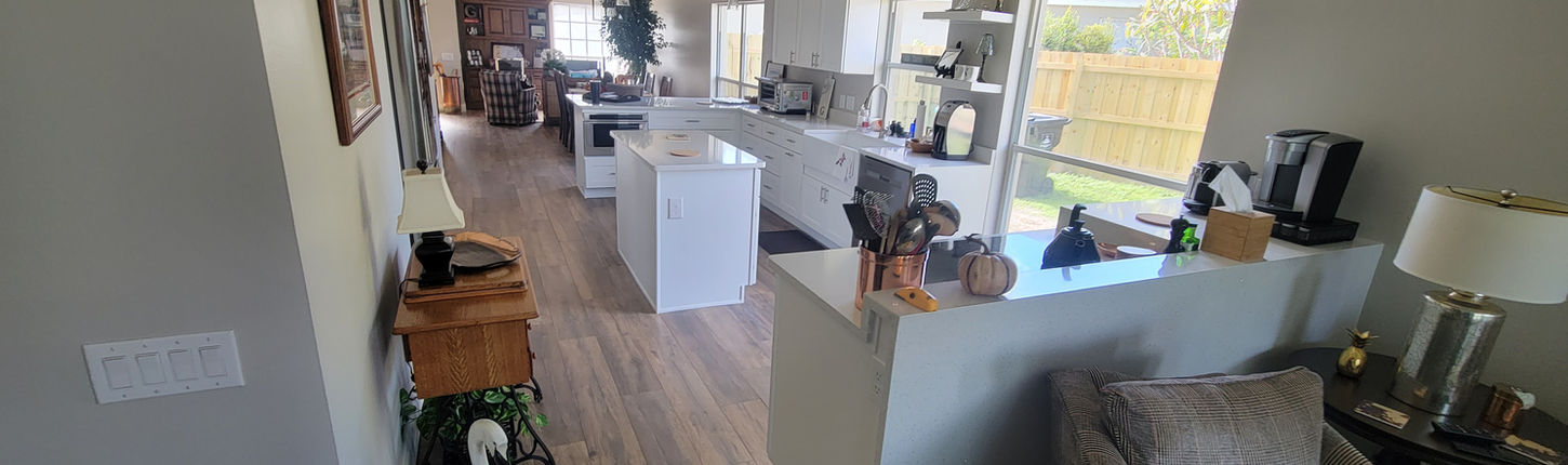 Complete Kitchen remodeling, including floor change, wall removal, new countertop, cabinets, lightning and painting.